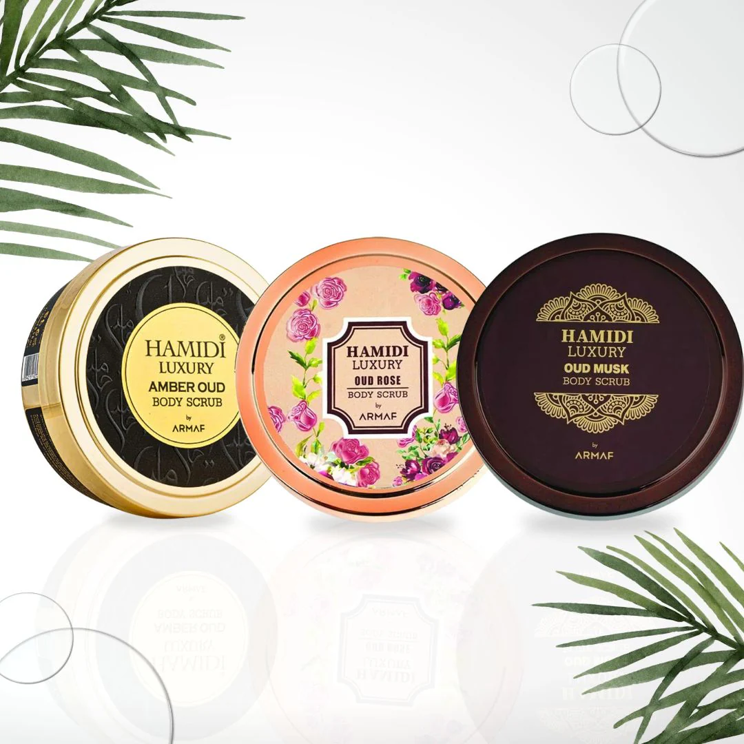 3PCS Luxury Body Scrub Trio Gift Set Magnetic Box By Hamidi | Gently Exfoliates For Soft & Smooth Skin, Naturally Derived Ingredients. (Pack of 3)