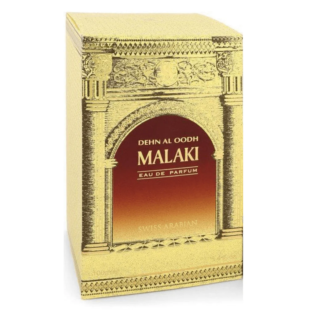 Dehn Al Oodh Malaki is the light of a setting sun in a bottle. This premier scent from Swiss Arabian comes in a delicately crafted glass bottle that contains a heady blend of the finest quality agarwood from India, Cambodia and Vietnam. AÂ fragrance that unfolds with the bold top notes of leathery allure, revealing a heart of intense animalic notes, and finally settling into a base of rich and earthy woods.